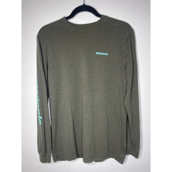 Patagonia Mens Text Logo Long-Sleeve Responsibili-Tee-Shirt Green Size S