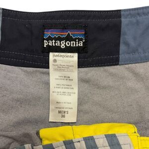 LIGHT STAIN NEAR LEFT FRONT POCKET - SEE LAST PICTURE FOR CLOSEUP. Patagonia Board Shorts Mens 36 Wavefarer 10" Inseam Striped Beach Vacation Swim.