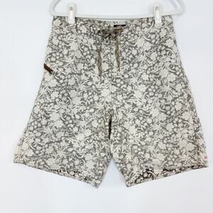 Patagonia Men's Wavefarer Board Shorts Tan Cream Floral Size 33 Swim Beach Pool