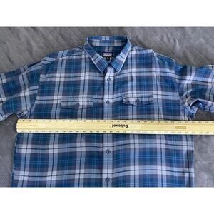Patagonia Men's XL Blue Plaid Common Threads Organic Cotton Long Sleeve Pckts See photos for measurements