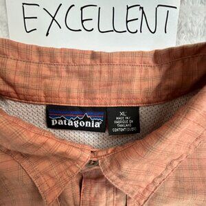 Patagonia Mens XL Button-Up Vented Shirt Rust Orange Checked Lightweight Outdoor