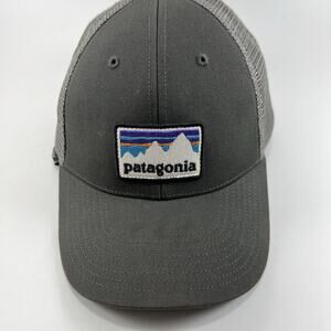 Patagonia Mesh Canvas Patch Sunset Mountains Logo Trucker Camp Hat Gray Baseball