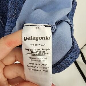 Patagonia Metairie Dress M Surplice V Neck Organic Cotton A Line Flare Navy Blue