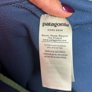 Crafted with a combination of cotton and polyester, this pullover ensures breathability and lightweight warmth, making it suitable for all seasons. The fleece fabric provides a soft touch, while the snap button closure adds a functional accent. Adorned with the iconic Patagonia logo and designed for a regular fit, this piece is machine washable for easy care. Whether you're exploring nature or enjoying a leisurely day out, this sweater is an embodiment of both style and practicality.
