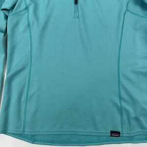 This Patagonia Midweight Capilene Baselayer Long Sleeve Pullover 1/4 Zip Top is the perfect addition to your wardrobe. Made of high-quality polyester material, this top comes in a beautiful blue color and features a grid pattern. The pullover closure and mock neck make it ideal for travel, casual wear, workwear, and activewear. It is machine washable and has thumb loops for added comfort.