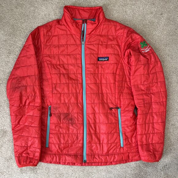 Patagonia Nano Puff Jacket Womens Small Red Primaloft Lightweight Logo FLAW