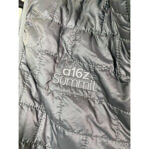 Designed for lightweight warmth, this Patagonia quilted vest offers practicality with style. Featuring a16z Summit embroidery, it’s crafted with recycled materials for sustainability.