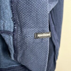 Patagonia Navy Dotted Funnel Neck Reversible Double Knit Pullover Size M BLEMISH