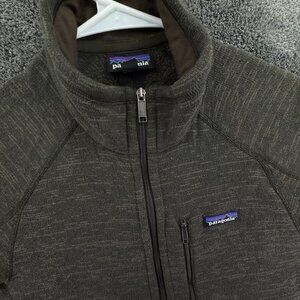 Stylish olive sweater by Patagonia. Features full zip and chest pocket. Ideal for outdoor activities. Used, but good condition.