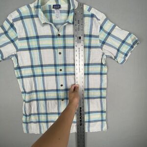 Patagonia Organic Cotton Button Up Short Sleeve Plaid XL Great Condition Green
