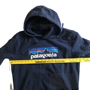 Patagonia P-6 Logo Uprisal Hoodie Sweatshirt Sz M Navy Blue Fitz Roy Thrashed