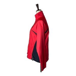This lightweight jacket from Patagonia is in excellent condition. It is in pink and black colors in a color-blocking pattern. It features; long sleeves with elasticated cuffs, full zipper closure, adjustable drawstring hemline, front zipped pockets, and embroidered logo on the chest. Made with 100% polyester material.