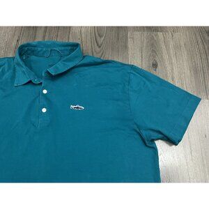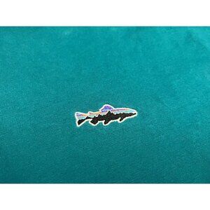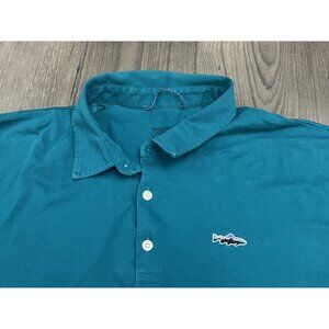 Patagonia Polo Shirt Short Sleeve Organic Cotton Teal Trout Logo - Stain on back