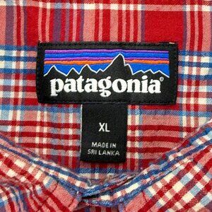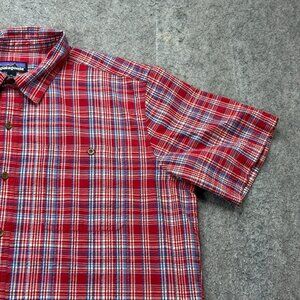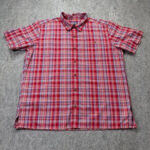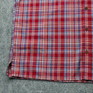 Patagonia Puckerware Seersucker Button Up Shirt Men XL Red Plaid Short Sleeve