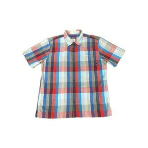 Patagonia Puckerware Shirt Mens Large Blue Red Gray Warm Wear Comfort Button Up