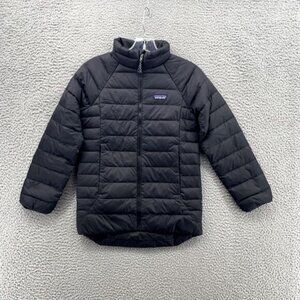 Patagonia Puff Down Jacket Kids Medium (10) Black Drop-Tail Sweater Slim Outdoor