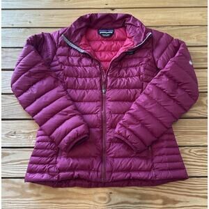 Patagonia Women’s Fuchsia Full Zip Down Puffer Jacket Coat Size Small Damaged