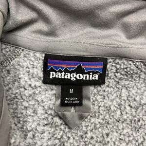 Design/Features: Quarter-zip front with stand collar; Patagonia P-6 logo patch at left chest; left sleeve zip pocket; elastic binding at cuffs and hem; heathered knit face with soft fleece interior