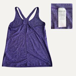 Sustainable + functional 💜 This Patagonia racerback tank is designed with lightweight, moisture-wicking fabric and a built-in shelf bra for support. The heathered purple color adds a stylish edge while keeping things versatile for workouts, yoga, or casual wear.