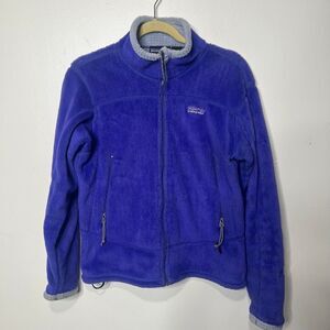 Patagonia Purple Blue and Gray Fleece Jacket Women's Sz M