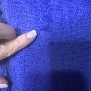Some wear on fleece on front of zipper area and left chest area there is a small circle indent (maybe something was cut out in the length of the fleece?) not a hole