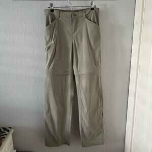 In good preowend condition. More of a muted color than the model photos show. Zippered pockets. Can be worn three ways.
