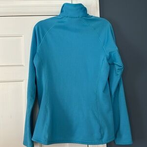 Beautiful barely worn R1 fleece in bright blue. One tiny barely visible stain on front bottom left, see close up photo.