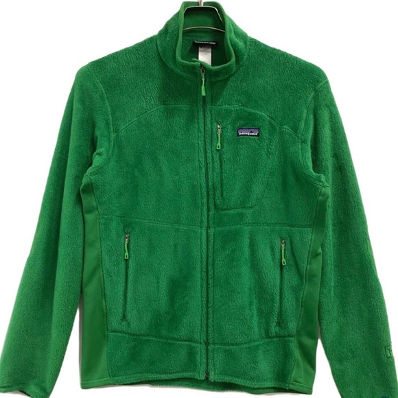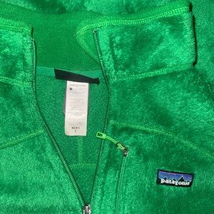 Soft fleece jacket by Patagonia. Features full zip and dual side pockets. Ideal for warmth and comfort.
