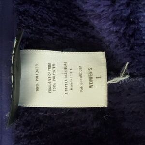 Experience warmth with this plush fleece jacket. Soft texture and light purple hue. Ideal for cool weather. No flaws noted.
