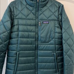 Warm puffer jacket by Patagonia. Features quilted design and zippered chest pocket.