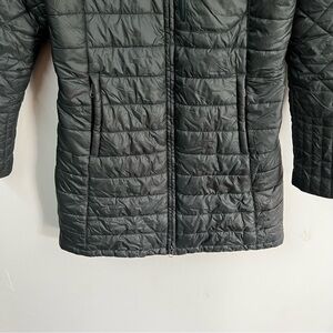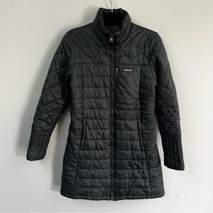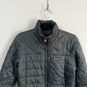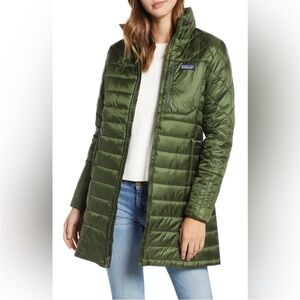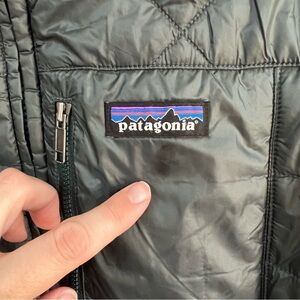 There is a small spot of discoloration under the Patagonia brand tag on front. Not significant or super noticeable, just a bit darker than the rest of the coat. Please see all pics. Otherwise in very good preowned condition