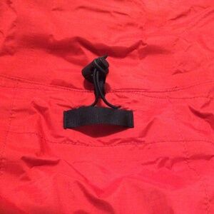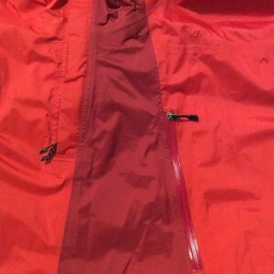 2 tone RED fully water proof w/ H2No from Patagonia - early edition rain shadow Jacket - Mens XL - Pre-owned Fair condition - see pictures for areas of inside showing wear where hanger hits & one area on belt line (still keeps you dry). Taped zippers for hand pockets, 2-way main zipper, fully adjustable & stowable hood, pit zips, velcro closure over top of zipper closure (which I love because if you're just throwing it on & want it to stay closed but not fully zipped > voila! velcro adjustable cuffs. All elastics & hardware in excellent shape
