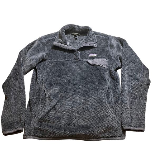Patagonia Re-Tool Snap-T Fleece Jacket Women Medium Gray Polartec Sherpa Outdoor