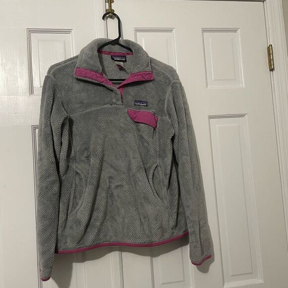 Patagonia Re-Tool SnapT Fleece Pullover Gray&Bright Pink Trim Womens Size Medium