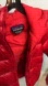Stylish red puffer jacket by Patagonia. Ideal for warmth and comfort.