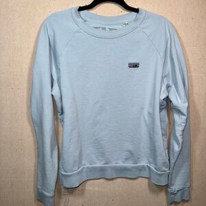Keywords: Patagonia, sweatshirt, crewneck, organic cotton, regenerative, blue, logo, casual, womens, comfy, soft, long sleeve, activewear, outdoor, Large