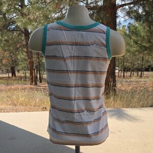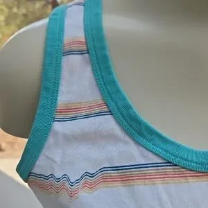 Stay cool and stylish with this striped tank top featuring teal accents. Perfect for casual outings.