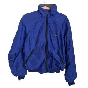 Vibrant royal blue jacket by Patagonia. Features zip closure and side pockets.