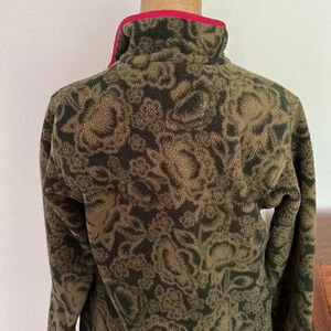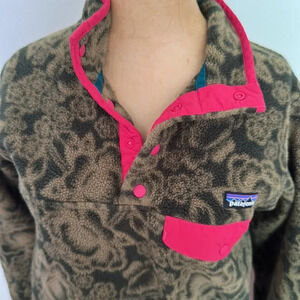 Patagonia S Synchilla fleece pullover snaps Barceloneta green floral pink edging