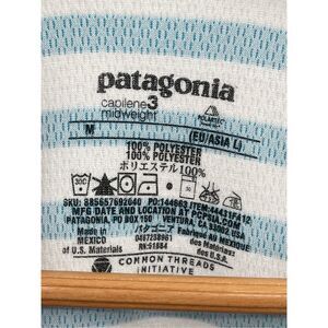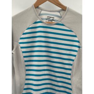 Patagonia Shirt Capilene 3 Midweight Baselayer Women Medium Aqua Blue Stripe