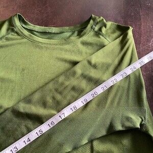 75% Polyester 25% Nylon, lightweight, breathable. Good for layering and travel. Color Green Size M. Pre-loved. Condition is good, some signs of wear, pilling and fuzziness in front due to wear as seen in last picture.