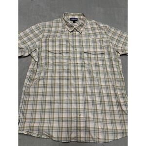 Patagonia Shirt Mens Large Plaid Short Sleeve Button Up Zip Pockets STY54025