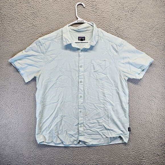 Patagonia Shirt Mens Size XL Blue Organic Cotton Short Sleeve Button Up