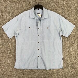Patagonia Shirt Mens XL Blue Check Plaid Button Up Performance Tech Trail Camp