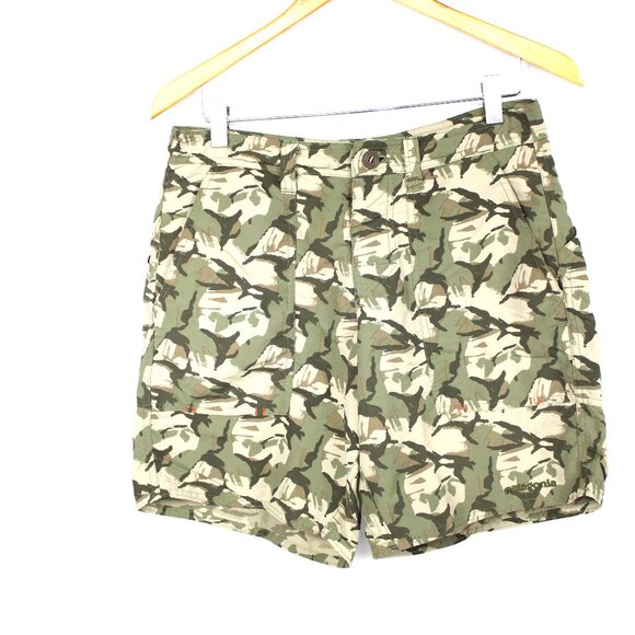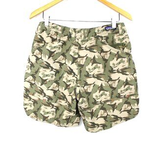 Patagonia Shorts Men's 30 Green Camo Wavefarer Stand Up Button Fly Hybrid Swim; No Tag Cut Out