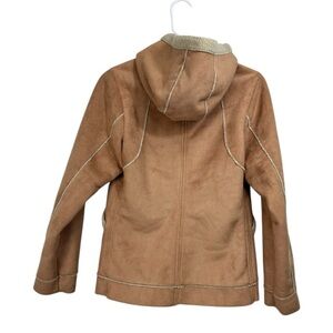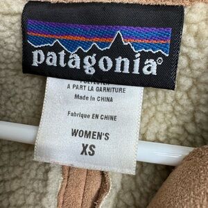 Patagonia Size XS Shearling Fleece Hooded Jacket Tan Faux Suede Jacket Sherpa