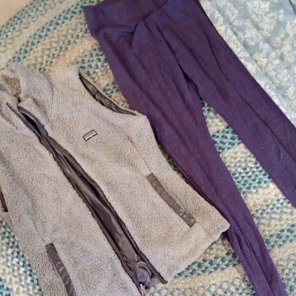 Patagonia Smartwool Sz S gray reversible Vest - 2 Wool leggings purple