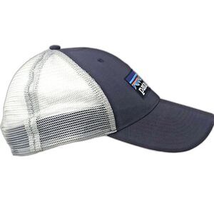 Y2k Patagonia Snap Back Trucker Hat. Embroidered Patch in Purple with Gray Mesh. Adjustable Cap Spell Out LOGO Outdoors Hiking Unisex