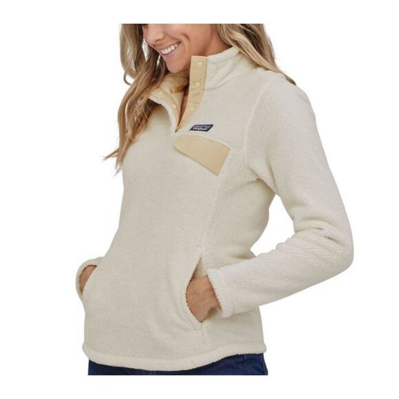 Patagonia Snap-T Pullover Fleece Top Womens Small White Raw Linen Logo Heritage