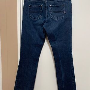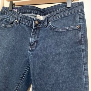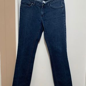 Gently worn low rise organic denim, size 31 x 27" length, 9" rise.